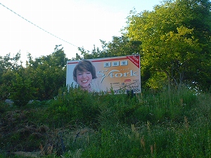 国道沿いにある家のお店の看板。、雑草で隠れそうだったので、頑張って草
