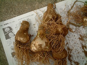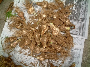 ニンニクを収穫してきました。大きく出来たのは2,3個。1年かけて土作りから始めた