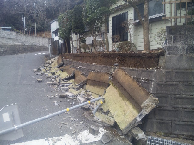 家の団地は、こういう場所が多々目立った。倒れた塀に車が押しつぶされていた。この写真は