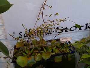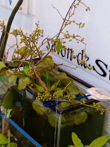 小さい枝でも、もったいないのでメダカの水槽の上に飾らせていただきました。