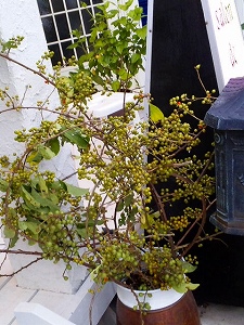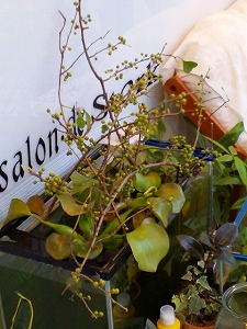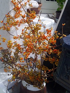 この間取ってきたつる梅もどき。もう、こんなにはじけてしまいました。