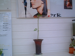 大きな枝ぶりは、壺に水を入れて、ただそこに入れただけです。