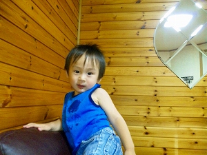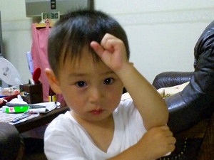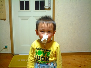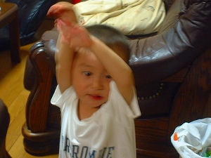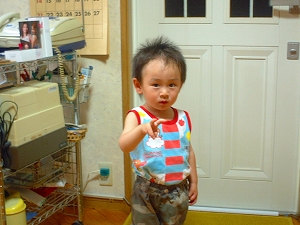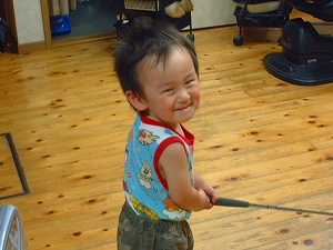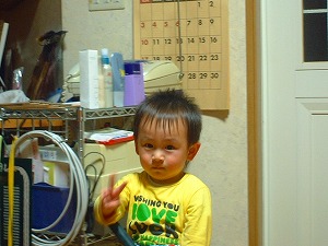 しかも、こんな格好で。お父さんにも、鼻をつままれて叱られていましたが、いっこうにお構いなし。