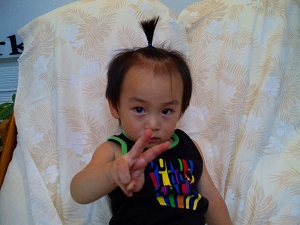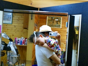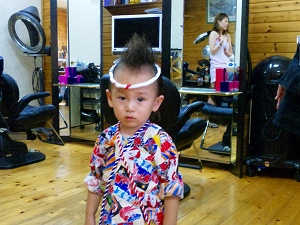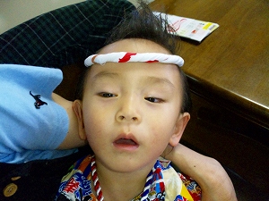 一通り遊んだ後、髪を切っている最中に眠ってしまいました。